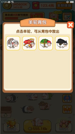 2、合并之后就可以解锁新的羊,而且每只羊都有不同的属性和产能。