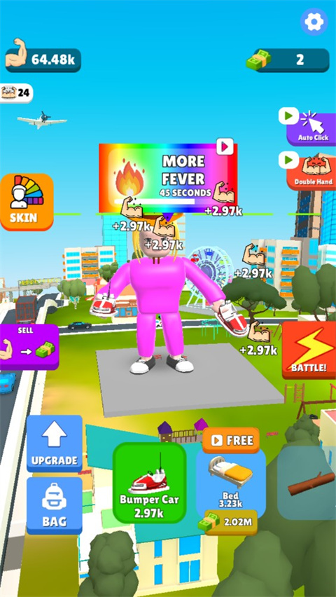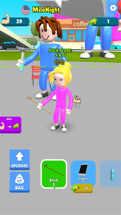 肌肉甜心英文名叫Lifting HERO的3D点击手游,玩法十分简单只需不断点击,从小重量起步,卖掉获得的肌肉来购买新物品以举起更多重量,还能将力量转换成钞票,在游戏里体验逐步提升举重能力、积累财富的乐趣,感受独特3D画面下简单点击操作带来的别样游戏体验。