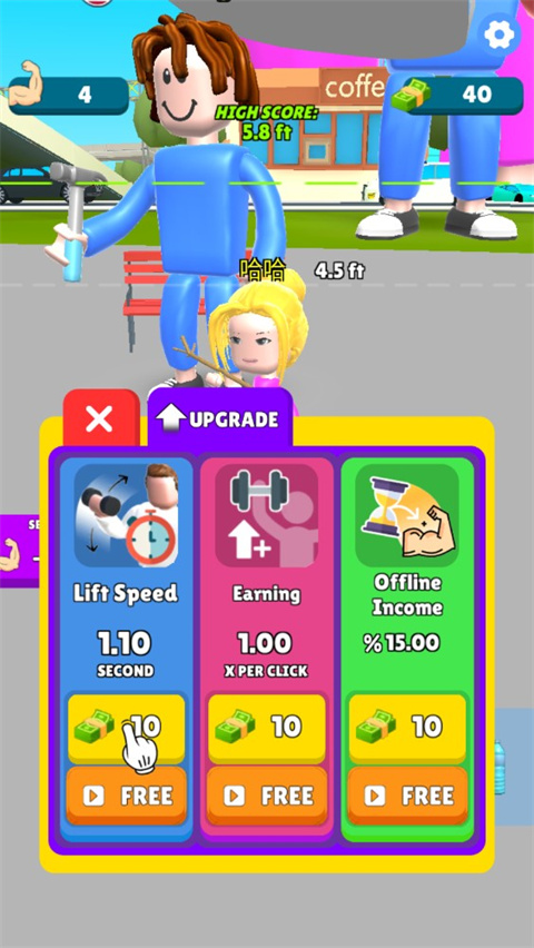-前期别乱花金币,优先升级 “钞票获取速度” 和 “锻炼效率”,过早买服饰会拖慢增肌发育进度