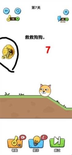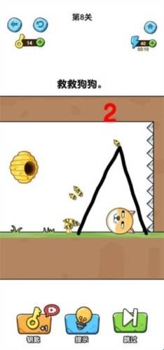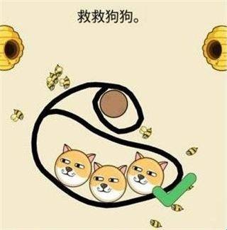 通关攻略:先画一个半圆,将狗狗圈起来,让蜜蜂蛰不到狗狗。