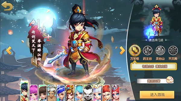 1、玩家打开并进入游戏后,就可以开始进行角色的创建啦,有十一种门派职业供玩家选择。