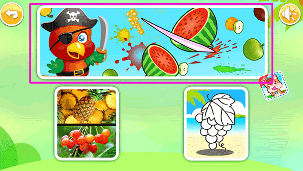 滑动手指,将可爱的水果切成两半,炸弹扣分,闹钟加时;