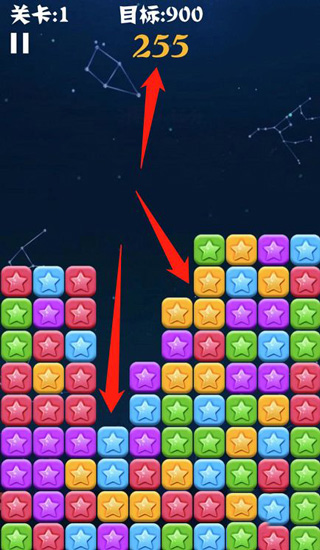 3、然后点击相邻的同颜色星星就能够将星星消灭,并且获得分数。