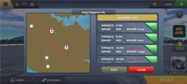 2、在开始驾驶前先选择要驾驶的起点和终点,驾驶的路线越加的长远,完成任务时所获得的奖励就越加丰厚