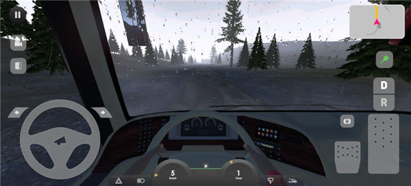 6、这是游戏的第一视角,沉浸感非常的强,公交的模型非常的逼真、还伴有落雨,司机驾驶着方向盘,还有剧烈的摇晃感,非常的真实