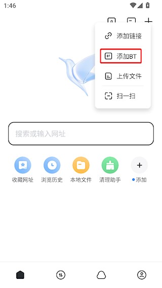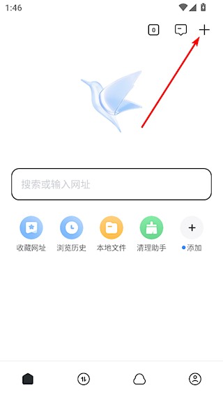 1、打开迅雷APP后,点击右上角的【+】;
