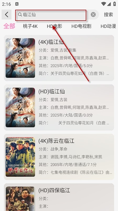 2、也可以点击搜索,通过关键词的方式快速搜索出自己喜欢的影片。