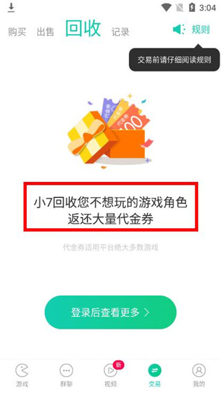 2、点击角色回收,可以将不想玩的游戏角色进行回收,同时还会返还大量代金券