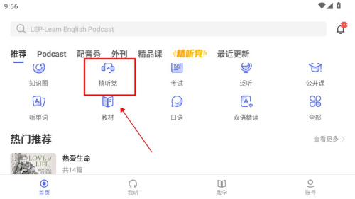 2、推荐、名师播客、精品课、配音秀、精听党,五个大分类极为清晰细致。