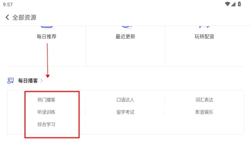 兴趣学习:有声读物、名人演讲、公开课、少儿英语、影视英语等丰富资源。
