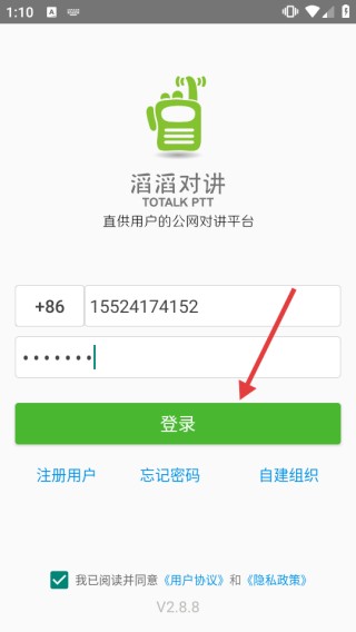 3、确认账号信息填写无误后,点击【登录】按钮,即可成功登录“滔滔对讲”应用并开始使用。