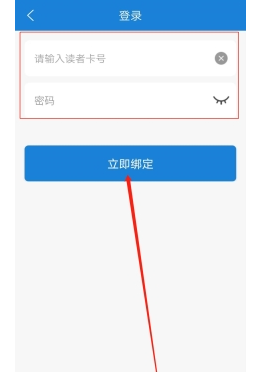 4、最后将读者卡号以及密码输入进去,点击“立即绑定”,这样我们就成功的绑定读者卡了。