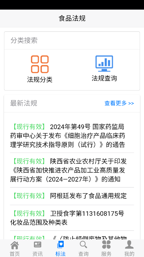 用户可以在食品伙伴网App查看行业相关的法律法规,必要时为自己维权。