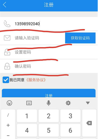 4、输入手机号、密码等注册;