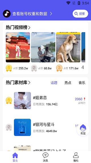 3、往下拖动的话,软件还提供了热门素材和视频内容;