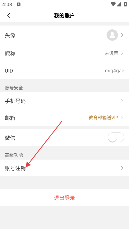3、进入【我的账户】页面后,找到【账号注销】选项并点击该选项。